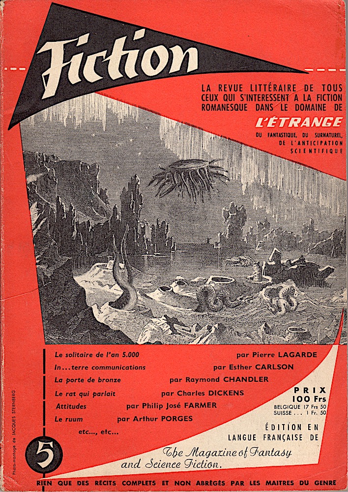 Revues - Fiction - 5 Fiction n° 5 de Arthur PORGES, (non mentionné), Esther CARLSON, Raymond CHANDLER, Michel-Aimé BAUDOUY, Philip José FARMER, Pierre LAGARDE, Alfred BESTER, Jacques BERGIER, Charles DICKENS, Igor B. MASLOWSKI, F. HODA Coll. Fiction (revue) (OPTA)
